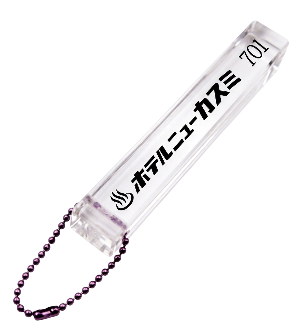昔ながらの温泉宿やレトロホテルでよく見かける、あのアクリルスティック型の「ルームキー」をオリジナルで制作しました!